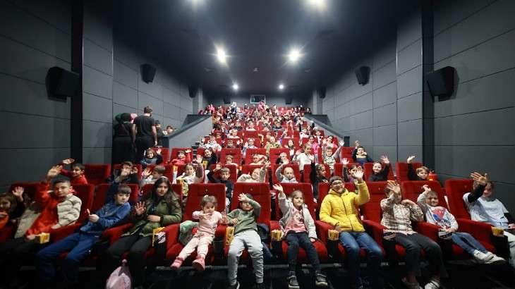 Sinema yerleşkesinde bulunan salonların tamamını dolduran çocuklar gönüllerince eğlenip film keyfi yaşarken veliler ise salon dışında çocuklarını heyecanla bekledi.