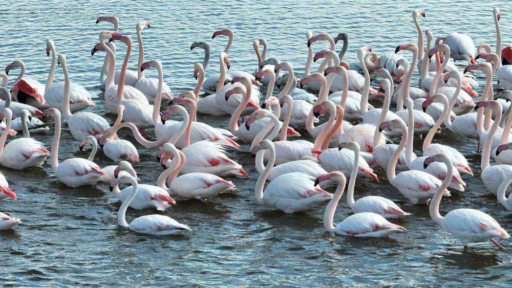 Göçmen kuşların en zarif temsilcilerinden biri olan kırmızı flamingolar, dronla görüntülendi.