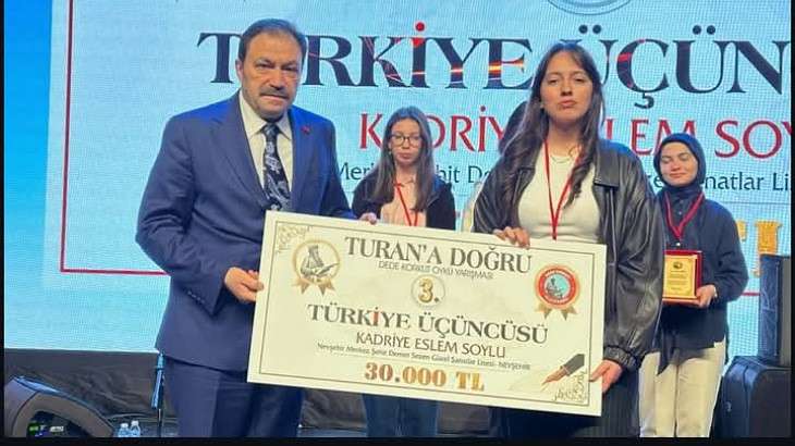 Nevşehir İl Milli Eğitim Müdürlüğünden yapılan açıklamada "TEBRİKLER KADRİYE ESLEM.. Millî Eğitim Bakanlığı Ortaöğretim Genel Müdürlüğümüz onayı ile Türk Dünyası Dayanışma ve Yardımlaşma Derneği tarafından Türkiye geneli Bakanlığımıza bağlı resmî/ özel ortaöğretim kurumlarında eğitim gören öğrencilerimize yönelik düzenlenen "Özüm Sözüm Dede Korkut Turan'a Doğru Öykü Yarışmasında” il birincimiz olan Şehit Demet Sezen Güzel Sanatlar Lisesi öğrencimiz Kadriye Eslem SOYLU,; 10 Nisan Perşembe günü Haliç Kongre Merkezinde düzenlenen final gec 81 il birincileri arasında Türkiye üçüncüsü olmuştur. Öğrenciniz Kadriye Eslem SOYLU, üçüncülük ödülü olarak 30.000₺ almıştır. Öğrencimizi tebrik eder, emek veren ve katkı sağlayan yönetici, öğretmen ve velimize teşekkür ederiz" denildi