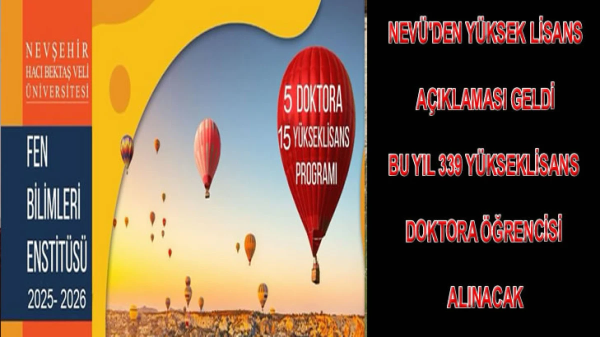 Nevşehir Hacı Bektaş Veli Üniversitesi (NEVÜ) Fen Bilimleri Enstitüsü, 2025-2026 Eğitim - Öğretim Yılı Güz Yarıyılı için 241’i tezli yüksek lisans programlarına, 50’si tezsiz yüksek lisans programlarına ve 48’i de doktora programlarına olmak üzere toplam 339 öğrenci alacak.