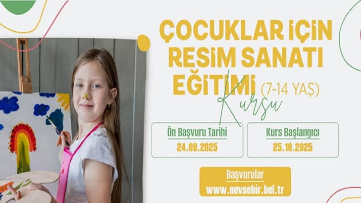 Çocuklar İçin Resim Sanatı Eğitimi Kursu; Kurs 25 Ekim 2025 tarihinde başlayıp 13 Aralık 2025 tarihinde tamamlanacak. Kurs Cumartesi günleri 09.00 - 13.00 saatleri arasında yapılacak.