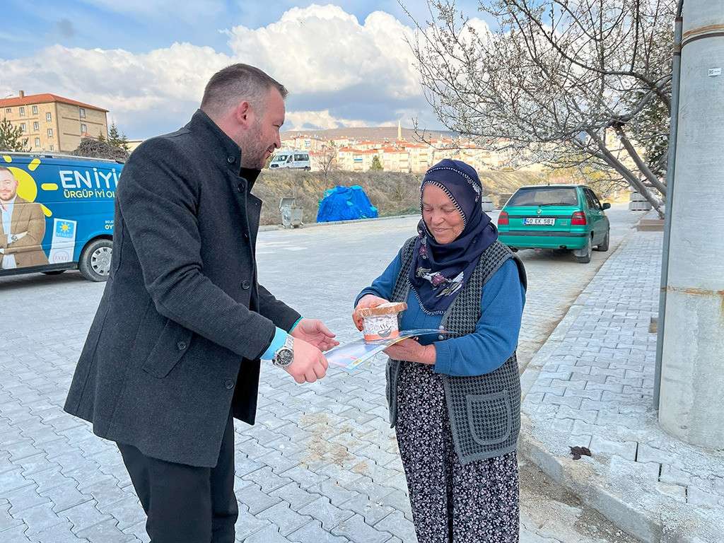 İYİ Parti Ürgüp Belediye Başkan Adayı Oytun Akyol ve heyeti günün anlam ve önemine istinaden vatandaşlara Üzüm Hoşafı ve Ekmek ikramında bulundu.