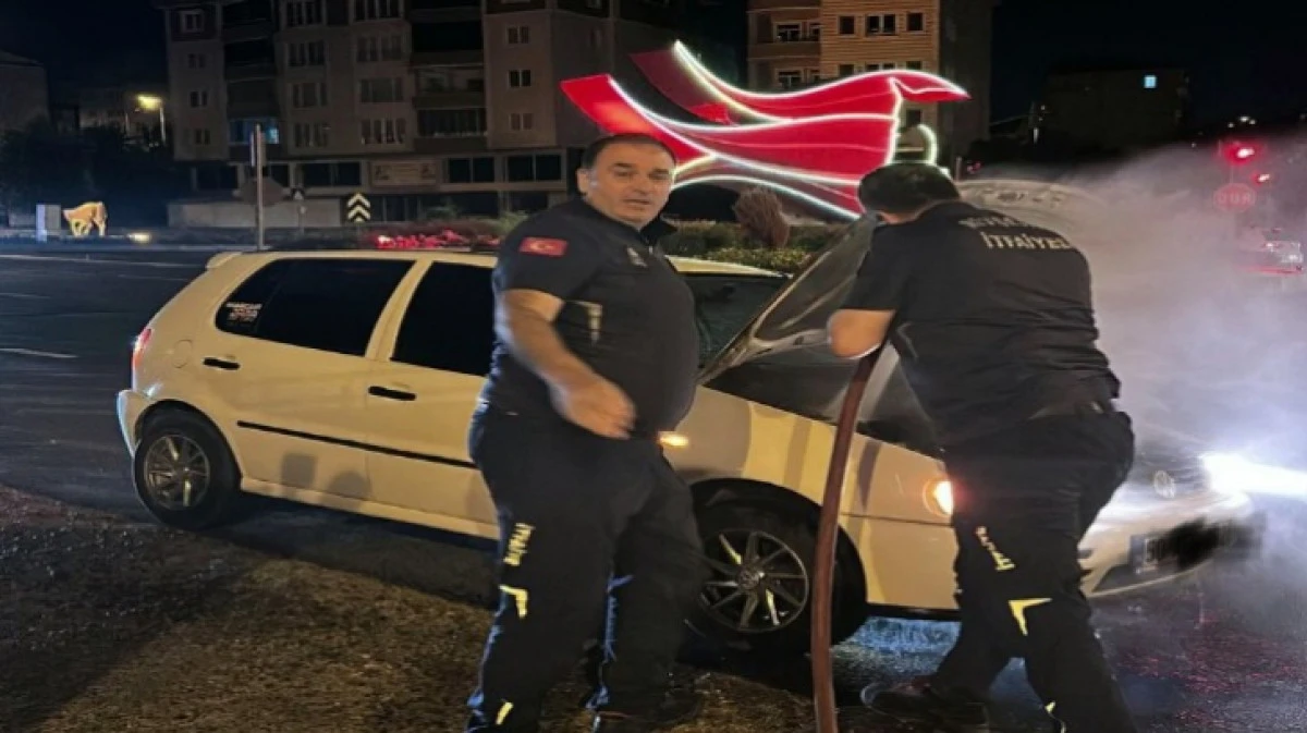 Nevşehir il jandarma alay komutanlığı karşısında meydana gelen olayda araç sahibi aracın motor kısmından çıkan dumanları görünce aracı hemen güvenli bir noktada durdur du 112 açık Merkezinden yardım istedi.