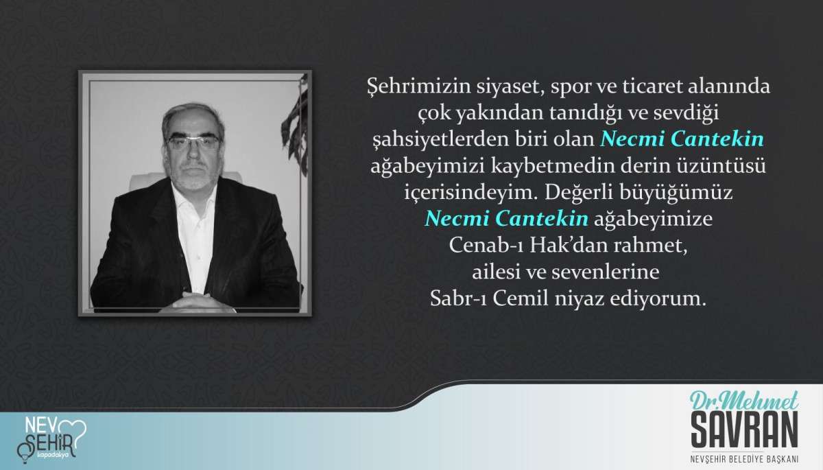 Nevşehir Belediye Başkanı Dr. Mehmet Savran, hayatını kaybeden Necmi Cantekin için taziye mesajı yayımladı.