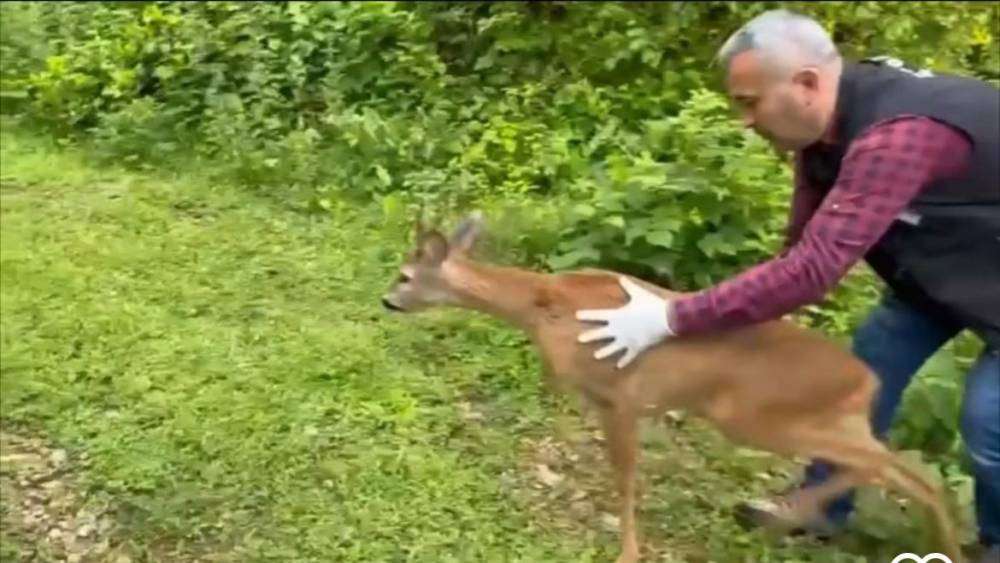 Bartın’da köylüler tarafından bitkin halde bulunan karaca veteriner hekim kontrolünün ardından yeniden doğaya salındı.
