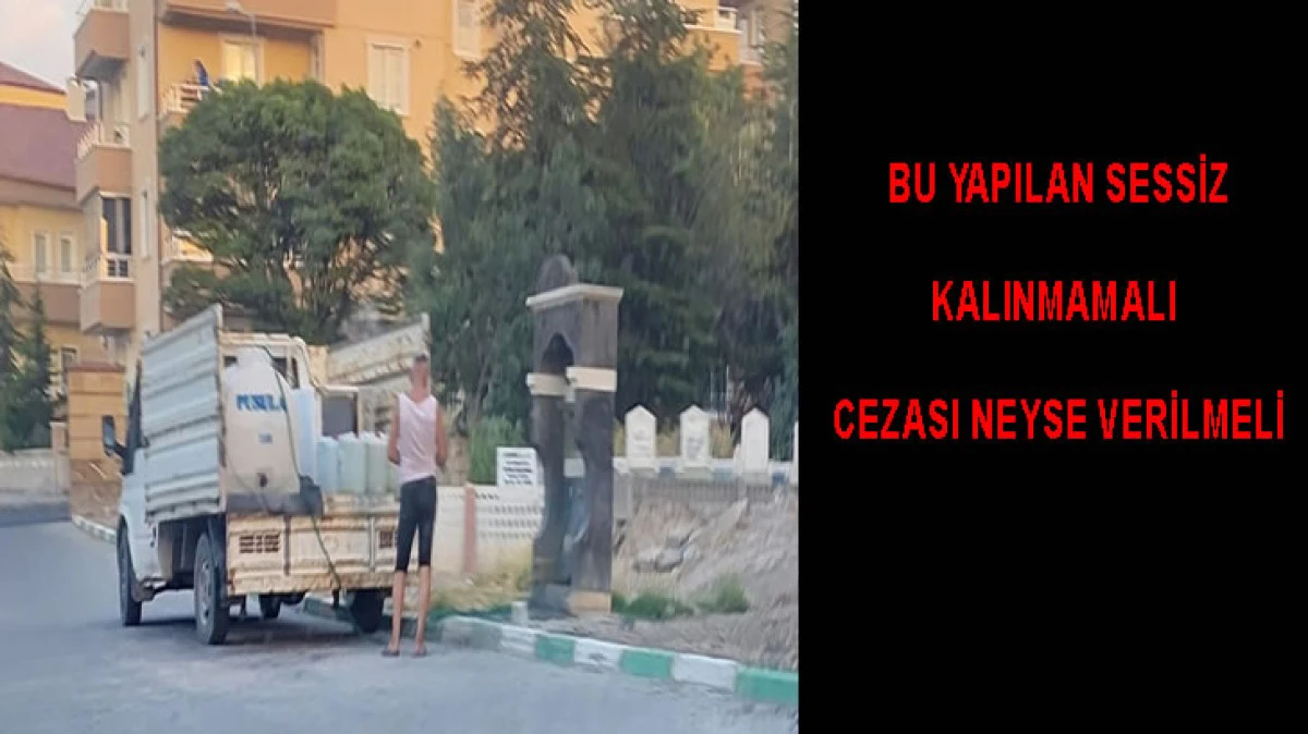 Çünkü sadece masum bir su doldrumanın ötesinde bedava SU'ya çökme fili var burada. Çünkü masum bir su doldurma dendiği zaman zaten o çeşmenin oraya konma gerekçesi olan mezarı sulayacak kadar su doldurma anlaşılır. Ancak fotoğraf'ta da görüldüğü gibi burada tonlarca su almaktan bahsediyoruz.