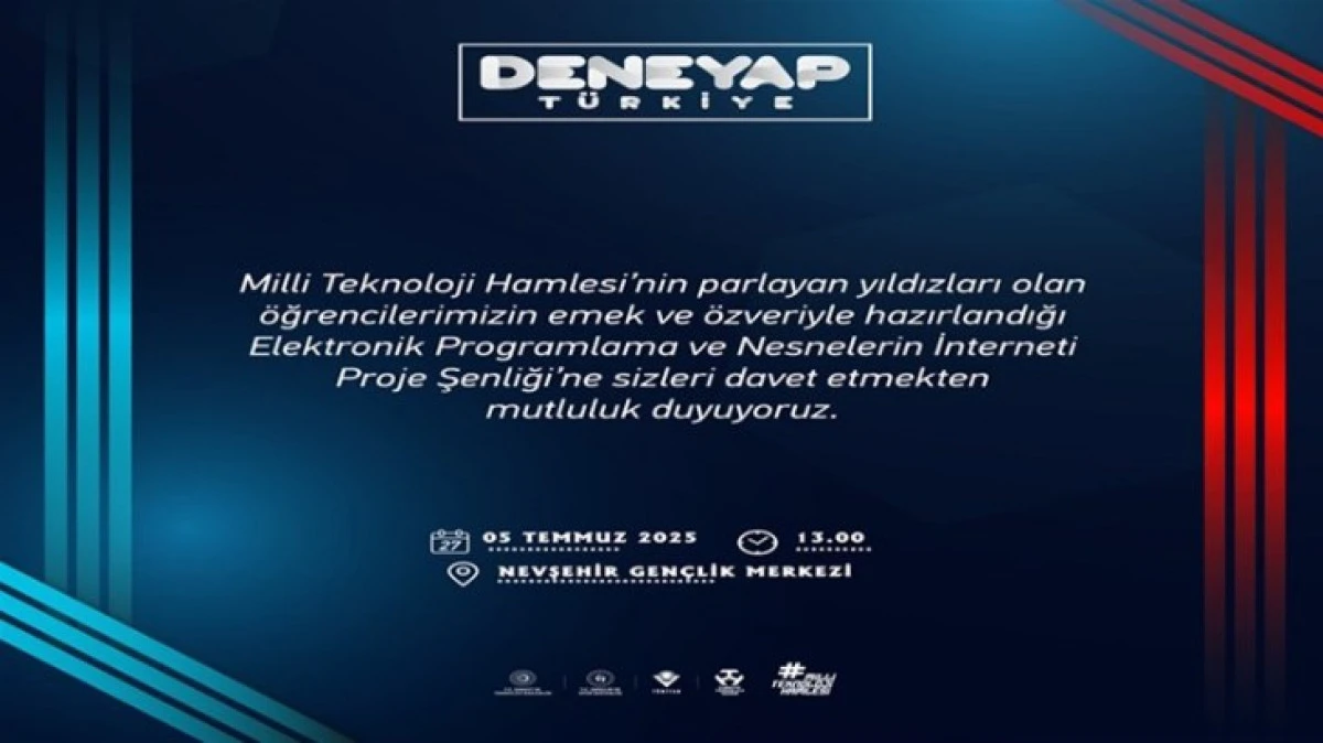 Nevşehir Gençlik ve Spor il müdürlüğünden yapılan açıklamada "Milli Teknoloji Hamlesi kapsamında gençlerin bilgi ve becerilerini sergileyeceği Elektronik Programlama ve Nesnelerin İnterneti Proje Şenliği, 5 Temmuz 2025 Cumartesi günü saat 13.00’te Nevşehir Gençlik Merkezinde düzenlenecek.