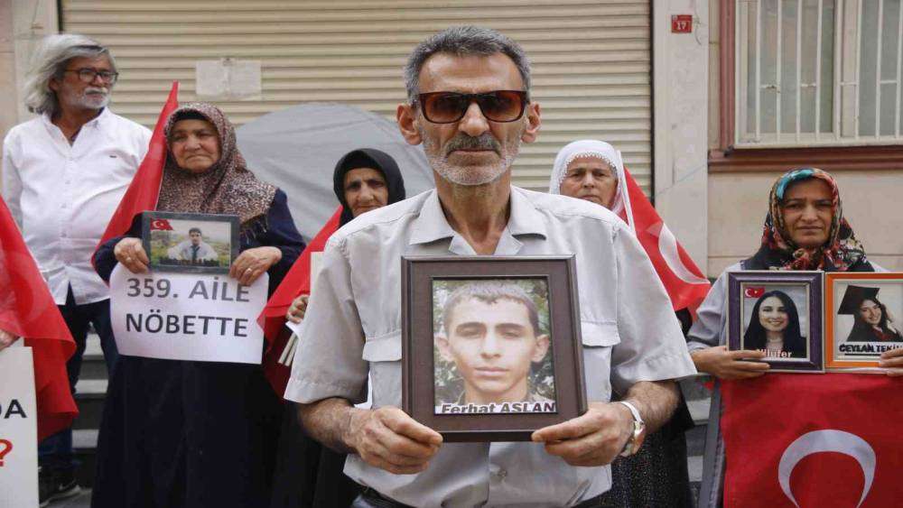 Diyarbakır’da dağa kaçırılan çocukları için ailelerin HDP il binası önünde sürdürdüğü oturma eylemine 359’uncu aile katıldı.Çocuklarının dağa kaçırılmasından HDP’yi sorumlu tutan ailelerin 3 Eylül 2019’da başlattığı oturma eylemi bin 378 gündür sürüyor.Diyarbakır’da 2015 yılında 16 yaşındayken kandırılarak dağa götürüldüğünü öne sürdüğü oğlu Ferhat Aslan için oturma eylemine katılan baba Nasradin Aslan, eylemin bin 378’inci gününde ailelere katılarak, çocuğuna teslim olması için çağrıda bulundu.Gazetecilere açıklamalarda bulunan Aslan, oğlunun bir an önce evine, ailesine dönmesini istediğini belirterek, “Onların yolu yol değildir. Gidişi olup, dönüşü olmayan bir yoldur. Onları kandıran, onları 3-5 kuruş para menfaatine satıp peşkeş çeken insanlar, bunlar insan değil. Bunlar vicdan sahibi değil. Bunlarda merhamet yok. Peki, o insanların çocukları, kardeşi orada var mı? Bunlar hani halkın savunucusu, Kürt savunucusuydu. Madem öyle ise gelsin kendi çocuklarını göndersin. Artık dayanma gücümüz kalmadı. Anne bir yanda hasta. Ben bir yanda bu yaşımda çekiyorum. Biz bunu hak etmedik” dedi.Baba Aslan, açıklamadan sonra evladının fotoğrafını alarak diğer ailelere katıldı.