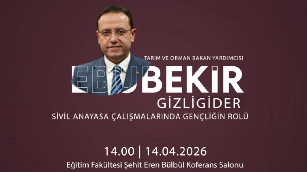 Program Detayları Etkinlik: Sivil Anayasa Konferansı, Konuşmacı: Ebubekir Gizligider, Tarih: 14 Nisan 2026, Saat: 14.00, Yer: Şehit Eren Bülbül Konferans Salonu.
