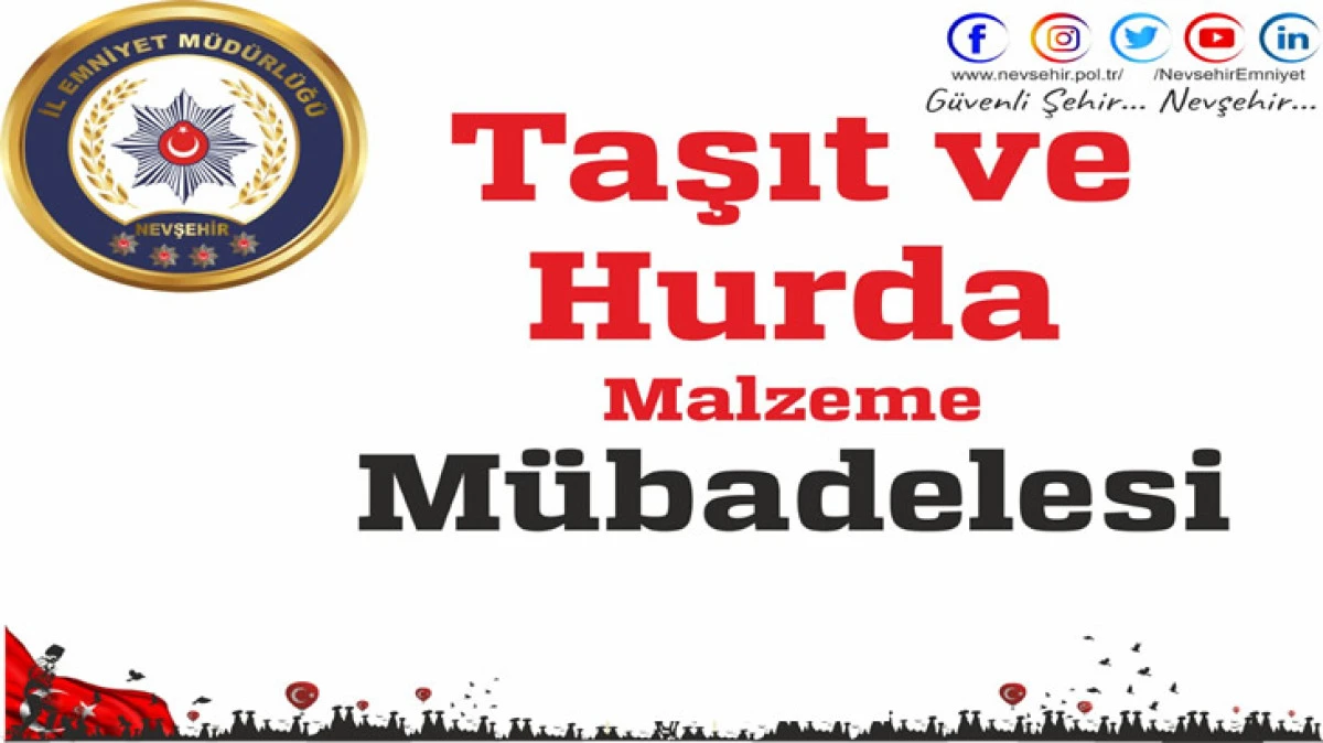 4645 sayılı Kanun ve bu Kanuna istinaden yayımlanan Emniyet Genel Müdürlüğüne Ait Araç, Gereç, Mal ve Malzemelerin Satış, Hibe, HEK ve Hurda Durum ve İşlemleri ile Hizmet Satışına Dair Yönetmeliğin 38’inci maddesi uyarınca Nevşehir İl Emniyet Müdürlüğünün taşıt ve hurda mübadelesi yapılacaktır.