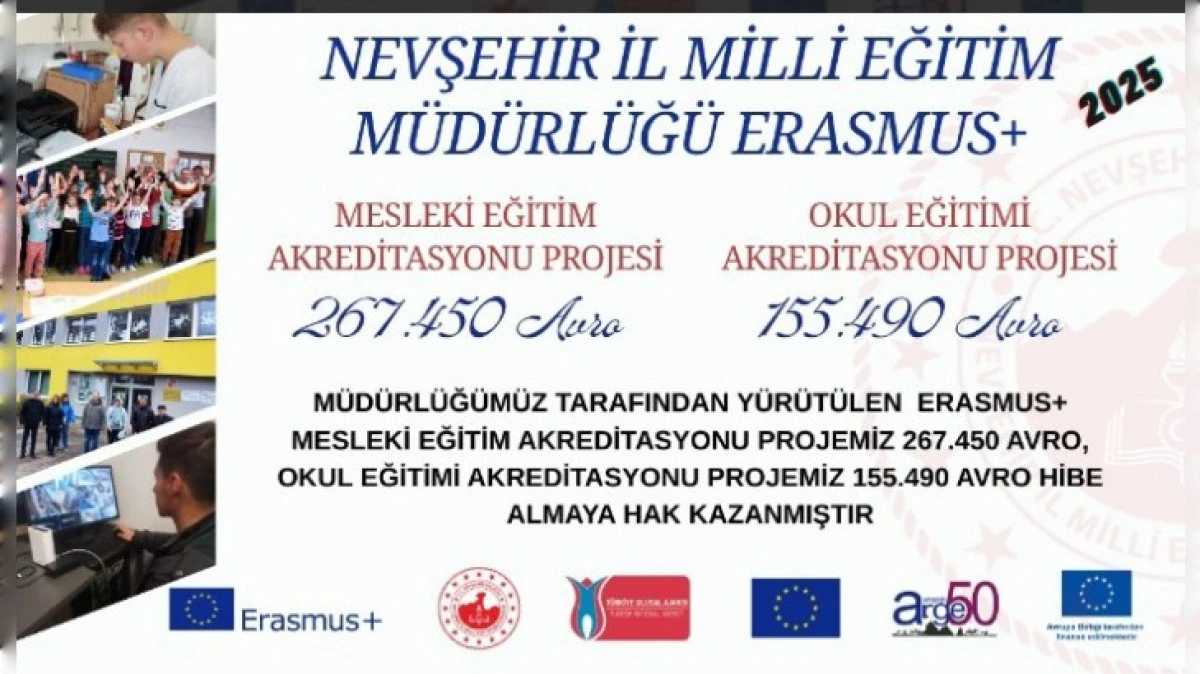 Nevşehir İl Milli Eğitim Müdürlüğünde yapılan açıklamada "2021 yılında başlayan Nevşehir İl Millî Eğitim Müdürlüğü Erasmus+ Akreditasyon projeleri, 2025 yılı başvuruları kapsamında önemli bir başarıya imza attı.