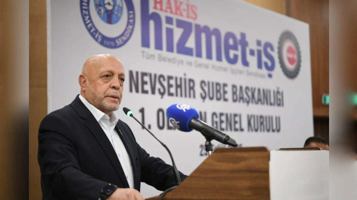 Genel Başkanımız Mahmut Arslan, 25 Eylül 2025 tarihinde Hizmet-İş Sendikamızın Nevşehir Şube 1. Olağan Genel Kurulu’na katılarak, çalışma hayatı ve gündeme ilişkin açıklamalarda bulundu.