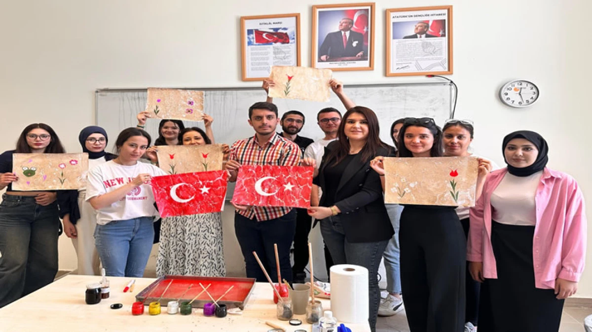 Geleneksel Türk kâğıt süsleme sanatı olan ebru atölyesi ise Türk Kültür Tarihi dersi öğretim elemanı Dr. Kamile Serbest tarafından düzenlendi. Atölyede, ebru sanatının malzemeleri ve çeşitleri tanıtıldı; öğrencilerle birlikte çeşitli ebru teknikleri denendi.