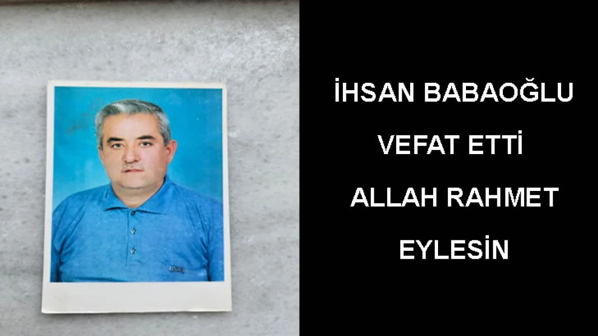 Merhum İhsan babaoğlu yıllarca sanayide Haddane işletmeciliği yaotı son olarakta çuvalişiyle uğraşıyordu. Merhum İhsan babaoğlu için cenaze namazı bugün İkindi namazına müteakip kulliye camiinden kılınacak ve kaldırım mezarlığında defnedilecek.