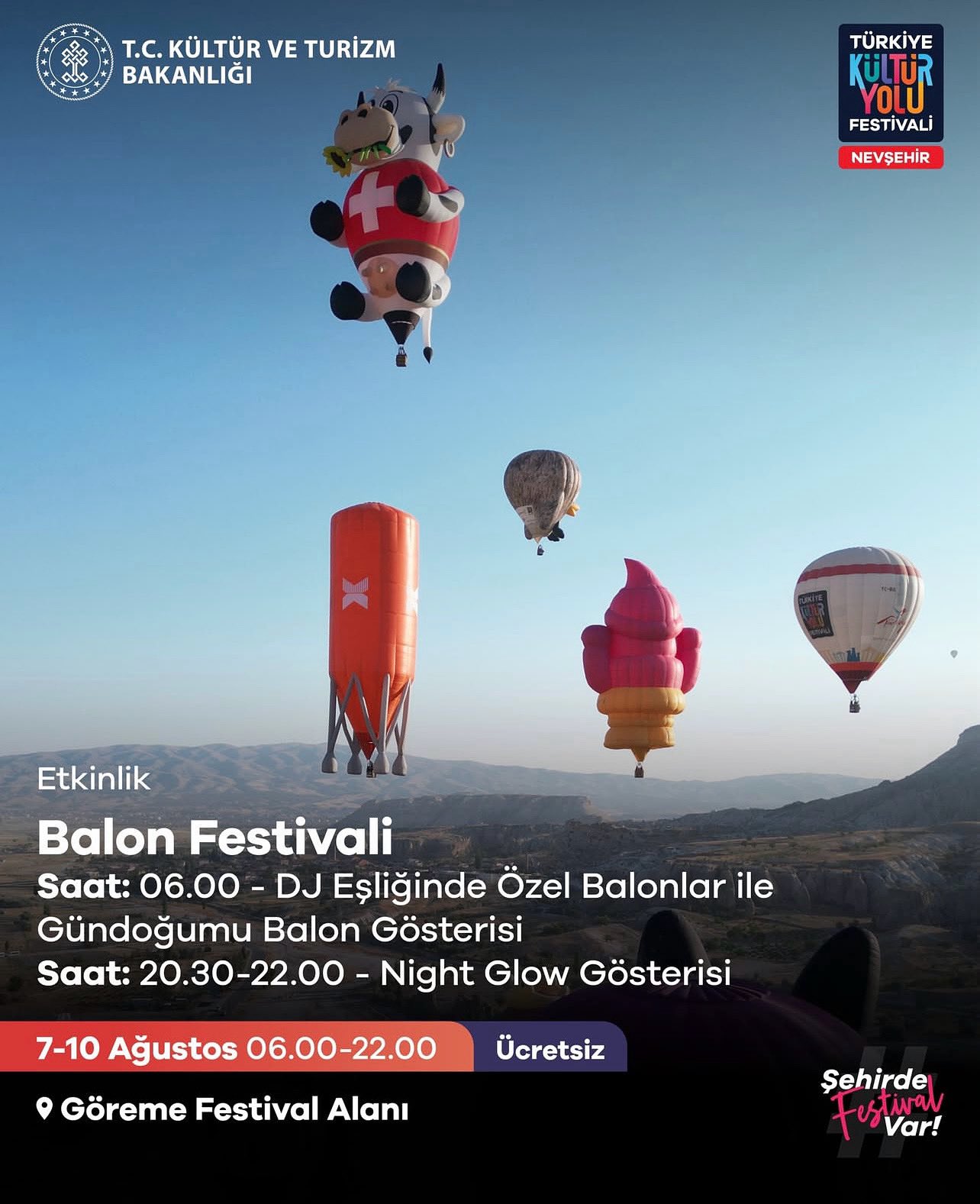 Her yıl izleyenlere unutulmaz bir görsel şölen sunan ve her yıl iple çekilen görsel şölenin bu yıl 7 - 10 Ağustos tarihleri arasında Kapadokya semalarında düzenleneceği açıklandı. Yapılan açıklamada ''Dünyanın dört bir yanından gelen balon pilotlari, bu yıl da Nevşehir Kültür Yolu Festivali’nde buluşuyor! Birbirinden özel balonların gökyüzünde uçuşunu izleyebileceğin bu unutulmaz etkinliği sakın kaçırma! Bizi takip et, festival heyecanina ortak ol!'' denildi.