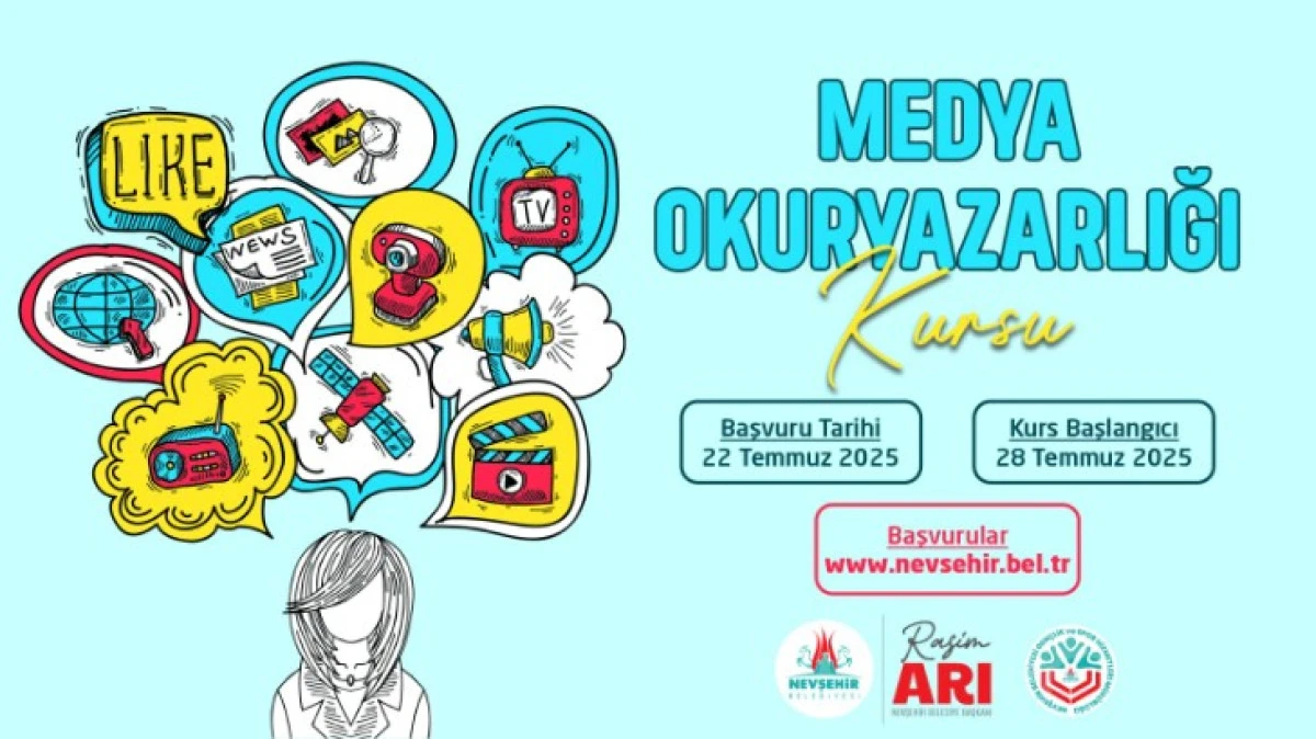 Medya Okuryazarlığı Kursu; Başvuruların 22 Temmuz 2025 Salı günü başladığı kurs 28 Temmuz 2025 tarihinde başlayıp 29 Eylül 2025 tarihinde tamamlanacak. Kurs Çarşamba, Perşembe ve Cuma günleri 13.00 - 16.00 saatleri arasında yapılacak.