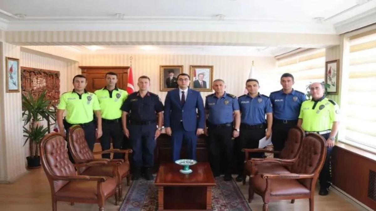 İlçemizin asayiş, huzur ve güvenliği için göstermiş oldukları özverili çalışmaları dolayısıyla teşekkür eden Kaymakamımız, tayini çıkan personelimize yeni görev yerlerinde başarılar diledi" denildi