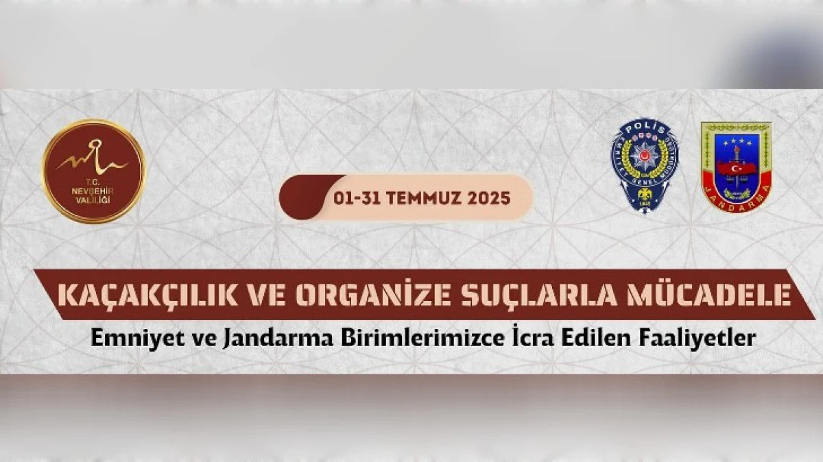1-31 Temmuz tarihleri arasında yapılan Kaçakçılık operasyonlarına ilişkin olarak elde edilen verileri Nevşehir Valiliği açıkladı.
