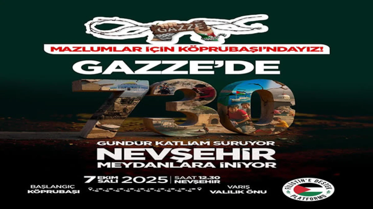 Platform yetkilileri, halkı zulme karşı dayanışma göstermeye davet ederek, “Gazze’de yaşanan insanlık dramına dikkat çekmek ve Filistin halkının yanında olduğumuzu göstermek için bu yürüyüşü organize ettik. Tüm Nevşehir halkını katılmaya çağırıyoruz.” ifadelerini kullandı.