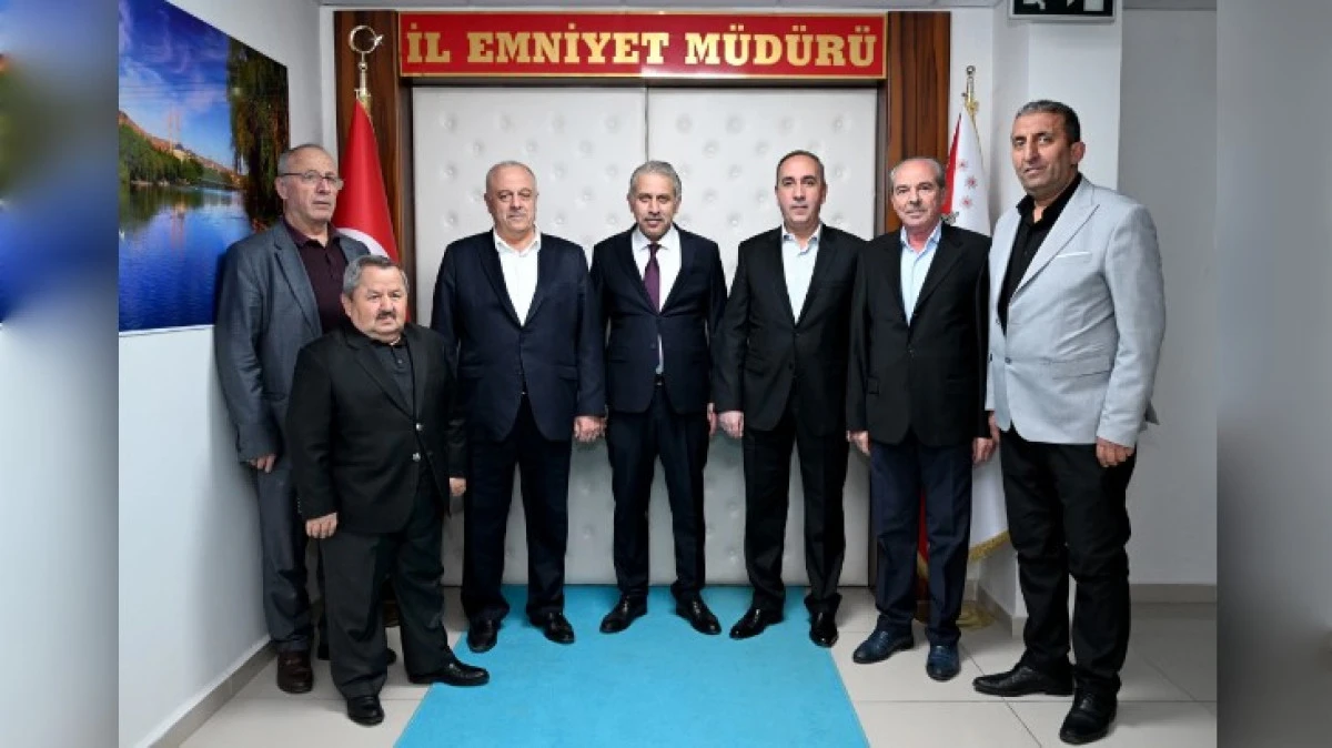 Nevşehir Ticaret ve Sanayi Odası (NTSO) Meclis Başkanı Mehmet Ali Öbekli ve beraberindeki iş insanları, İl Emniyet Müdürü Serkan Karaman’ı makamında ziyaret ederek hayırlı olsun dileklerini iletti.