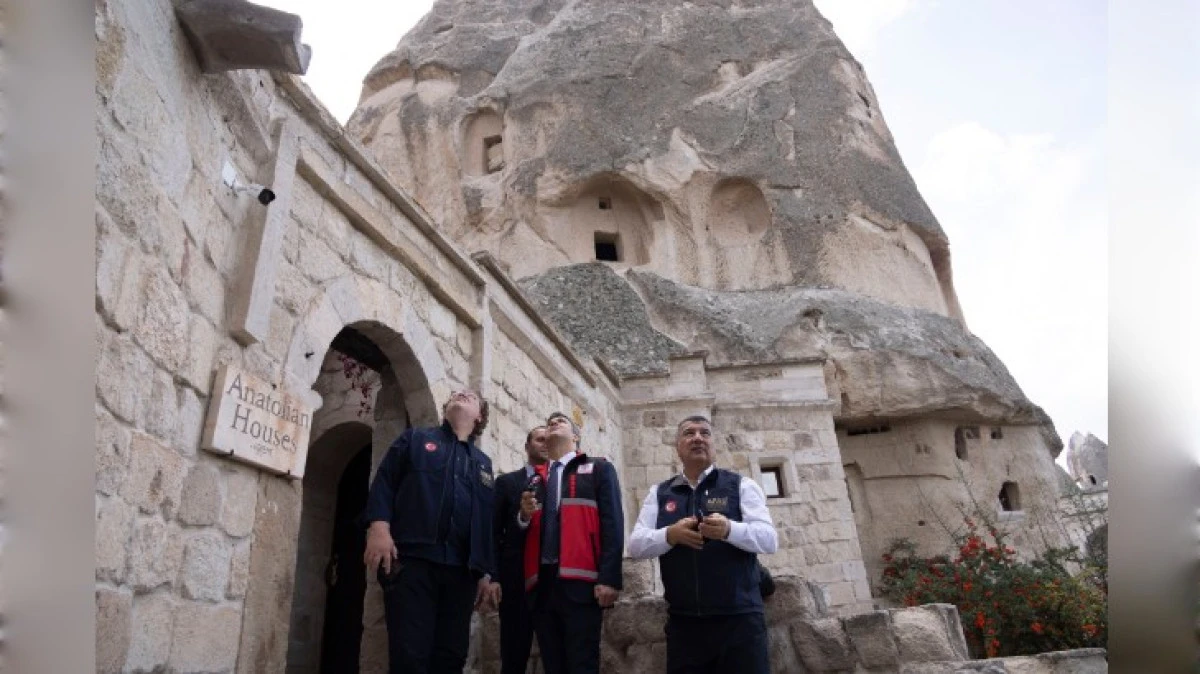 Kapadokya Alan Başkanı Cem Aslanbay, AFAD Başkan Yardımcısı Hamza Taşdelen ve Deprem ve Risk Azaltma Genel Müdürü Prof. Dr. Orhan Tatar, Kapadokya bölgesinde yerinde incelemelerde bulundu.