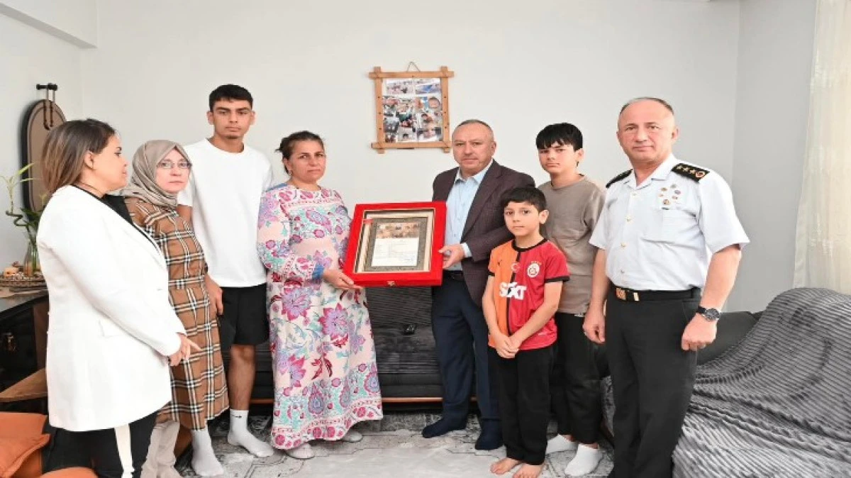 Jandarma Astsubay Kıdemli Başçavuş Hüseyin Uzun'un Nevşehir'de ikamet eden ailesini ziyaret ederek, Şehadet Beratını teslim edildi