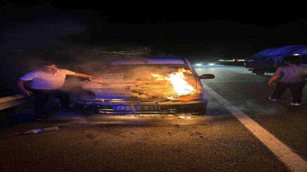 Olay, Diyarbakır yolu Kinederiç rampasında meydana geldi. Edinilen bilgiye göre, seyir halinde olan sürücüsünün ismi öğrenilemeyen 23 AEA 412 plakalı otomobil henüz belirlenemeyen nedenle yanmaya başladı. Alevlerin yükselmesiyle birlikte sürücü aracı yol kenarına çekerek bir yandan alevlere müdahale ederken, bir yandan da durumu itfaiyeye haber verdi. Yangın, itfaiye ekipleri tarafından yapılan çalışmalar sonucunda kontrol altına alınarak söndürüldü.