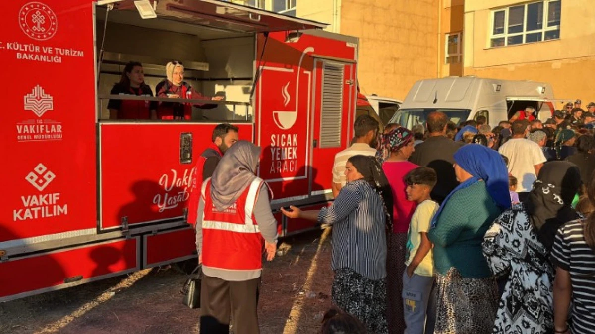 Vakıflar genel müdürlüğü tarafından organize edilen sıcak yemek dağıtımına ilgi oldukça yoğun zaman zaman kuyruklar bile oluşuyor.