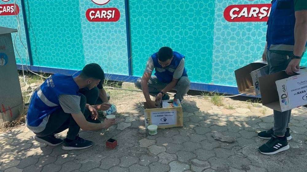 Gönüllü Adnan Şahiner ise, “Yaklaşık 3 aydır sokak hayvanları için mama su dağıtımı yapıyoruz. Sevimli dostlarımızın bu deprem sürecinden sonra da kendileri için mama ve su ihtiyacını karşılamak için belirli lokasyonlarda ihtiyaçlarını gidermek için çalışıyoruz” diye konuştu.