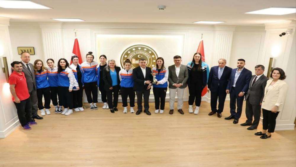 DÜZCE(İHA) – Türkiye liseler arası basketbol turnuvasında Türkiye üçüncüsü olan Kültür Koleji Kız Basketbol Takımı sporcu ve yöneticileri Düzce Valisi Cevdet Atay’ın misafiri oldu.