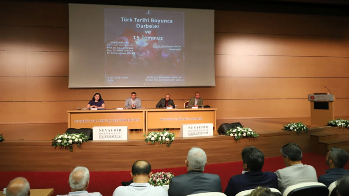 Nevşehir Hacı Bektaş Veli Üniversitesi (NEVÜ)’de, “15 Temmuz Demokrasi ve Milli Birlik Günü Anma Etkinlikleri” kapsamında "Türk Tarihi Boyunca Darbeler ve 15 Temmuz" konulu panel düzenlendi.