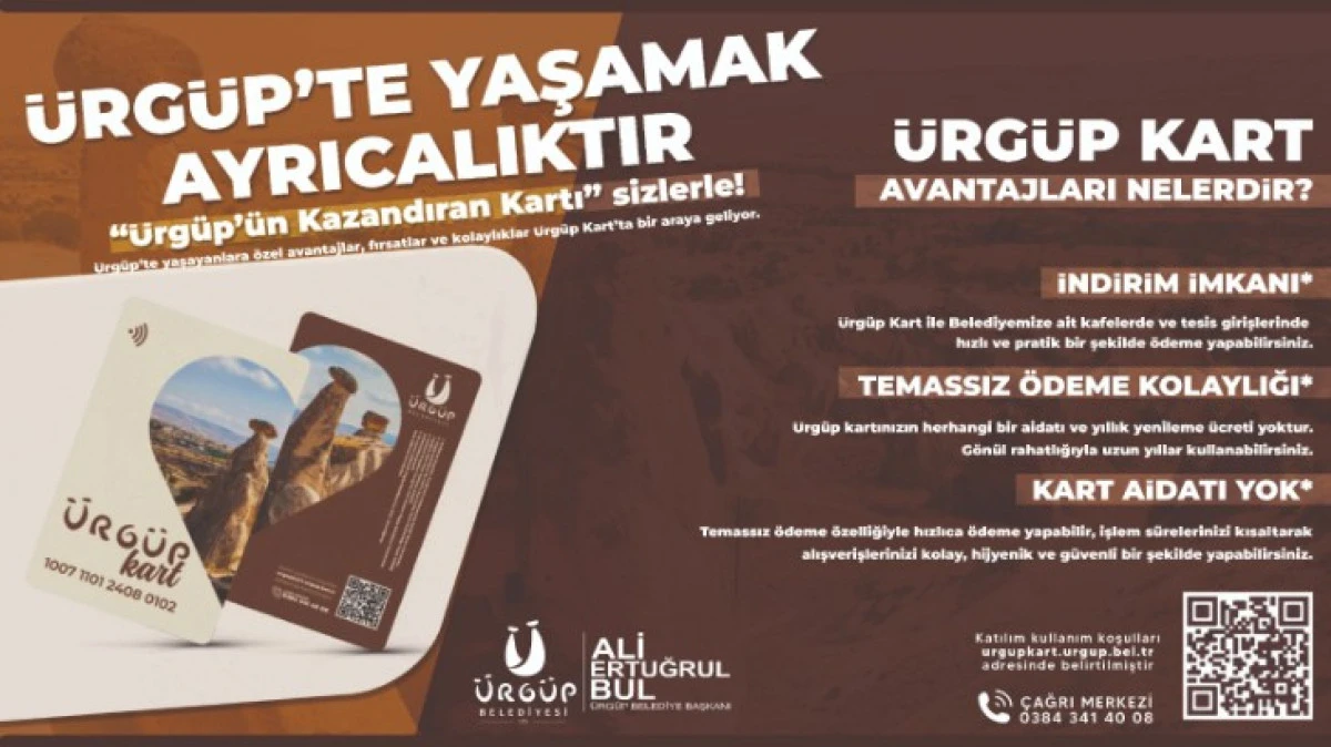 Ürgüp Belediyesi, vatandaşların sosyal ve ekonomik yaşamına katkı sunacak yeni bir uygulamayı hayata geçiriyor. Ürgüp Kart, ön ödemeli kart altyapısıyla hemşehrilere günlük yaşamda çeşitli kolaylıklar ve indirimler sağlayacak.