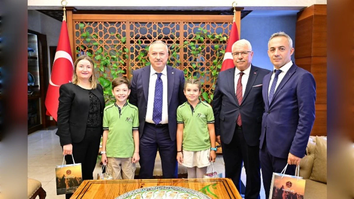 İl Milli Eğitim Müdürü Sn. Yusuf Yazıcı, 19 Mayıs İlkokulu Müdürü Sn. Ahmet Emre Ergin, Öğretmen Yasemin Metin Gezgin ile öğrencilerimiz Kevser Kızılırmak ve Çınar Eraslan’ı makamında kabul etti.