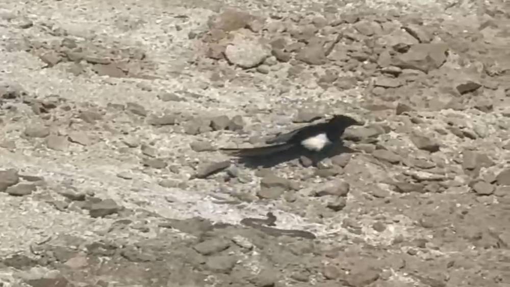 İşçiler tarafından çekilen görüntülerde yılanın açık alanda hareket ettiğini fark eden bir karga ve ardından bir kartal, havadan iniş yaparak av peşine düştü.